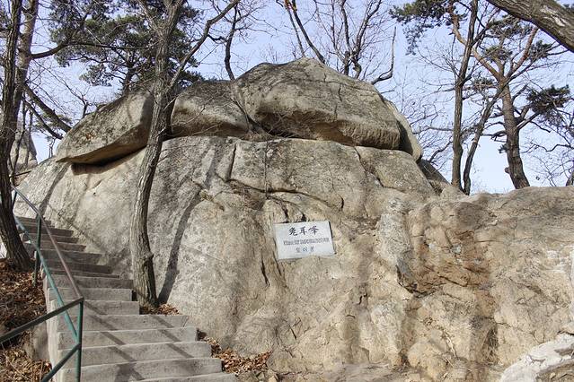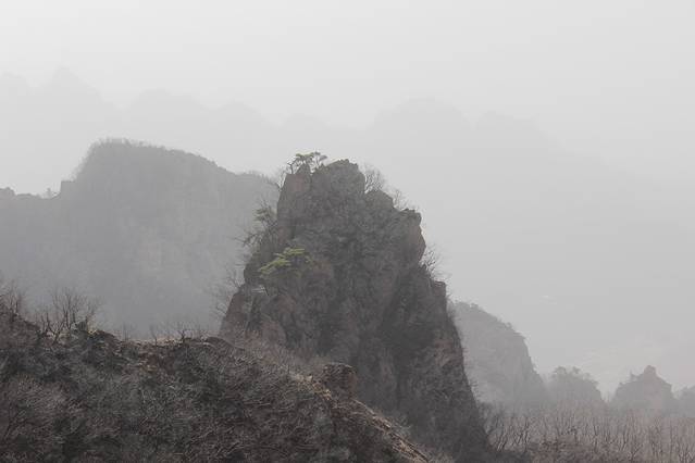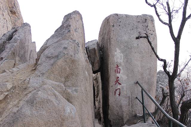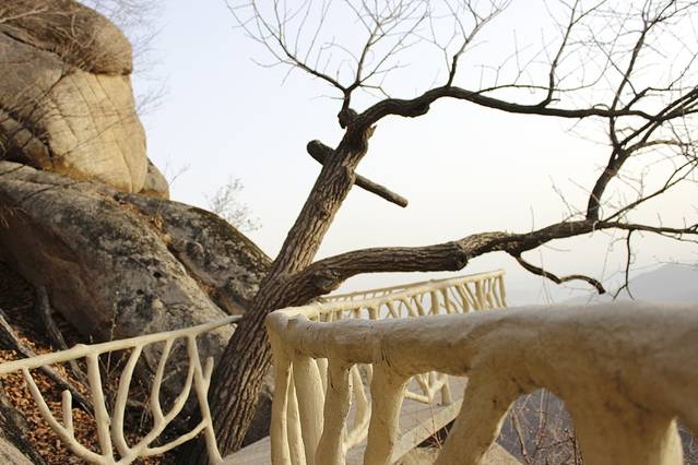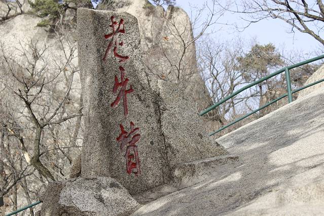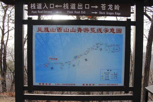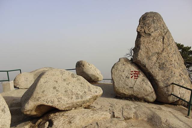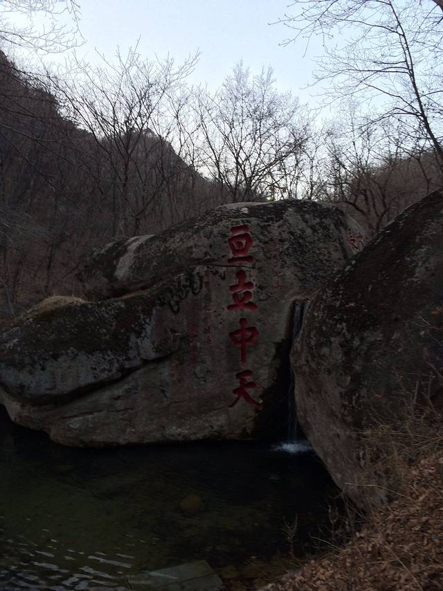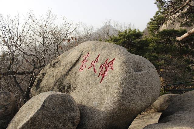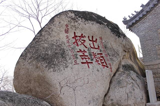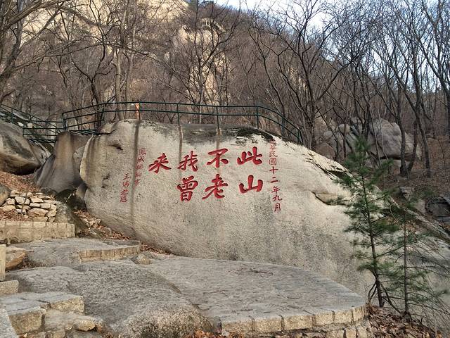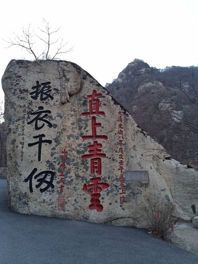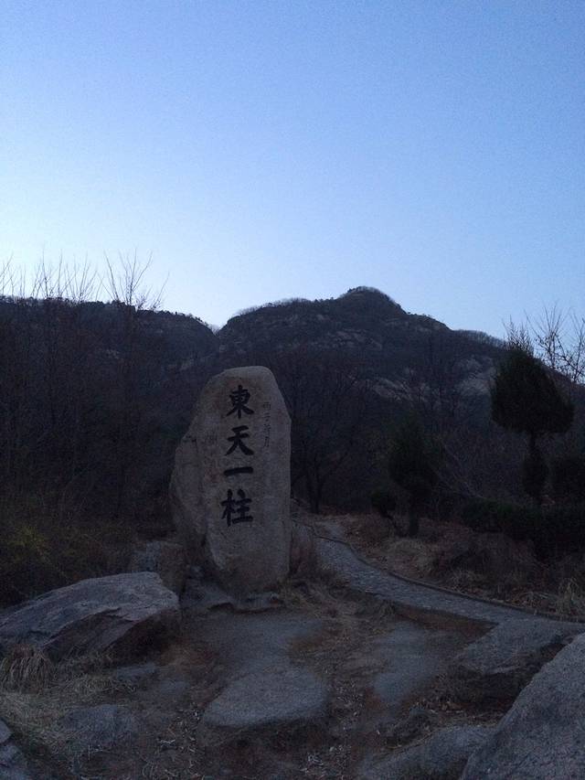 凤凰山书法题刻众多。“东天一柱”好象泰山也有一块同文的题刻。泰山那块是清人吴廷斌所留。凤凰山则是近代书法家刘炳森1996年6月留下的墨宝。