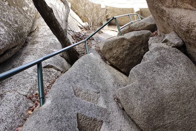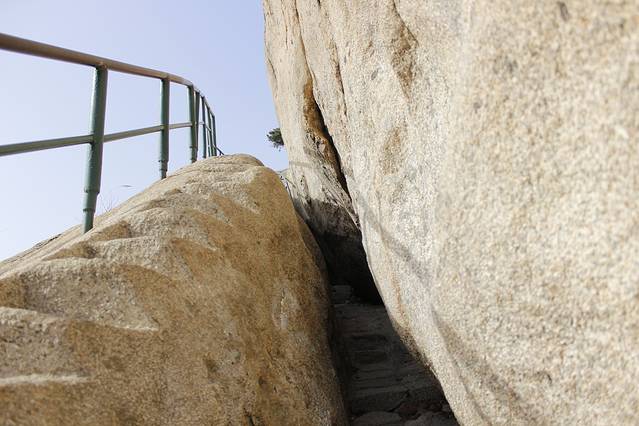 现在上山还好人不是太多,下山的时候,很多人都已经上来了,都在这同心石上合照,人特别多,都在等着,而且上面站了很多人。
