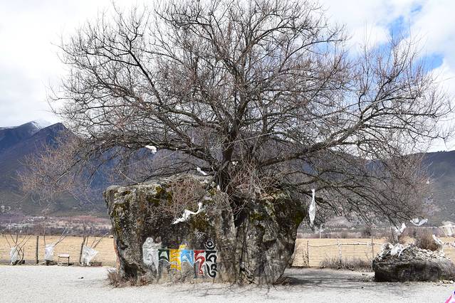 千年古桑树,传说松赞干布和文成公主为纪念其爱情而种,这棵挂满圣洁哈达的巨树,以雅鲁藏布江和南迦巴瓦峰为背景,成为众生祈祷爱情长久的圣地。