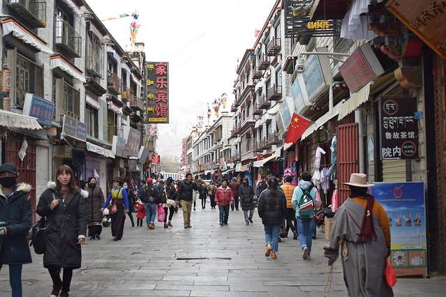 拉萨第一天的感受,无比干净的街道,大太阳,虔诚的朝圣者,随处可见戴口罩的人儿,每几百米的公共厕所,每几百米的特警。。。。(3月的敏感时期特警特多)