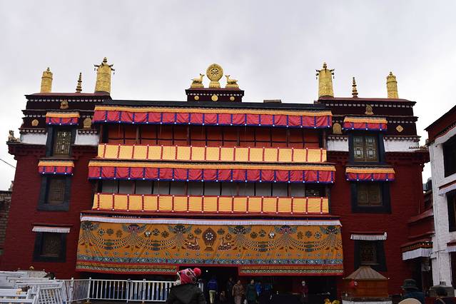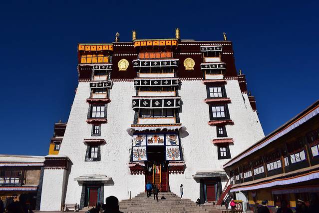 西藏的圣地布达拉宫,听说下午不售票,每日又限人数,赶紧一早起床去排队,到了9点半左右才开门,淡季的票价100,我们又请了导游讲解50。膜拜一下圣城,布达拉宫始于8世纪藏王松赞干布为迎娶尺尊公主和文成公主而兴建,17世纪五世达赖喇嘛重建后,成为历代喇嘛的居所,是西藏政教合一的统治中心。主体建筑分红宫和白宫,主楼13层,由寝宫,佛殿,灵塔殿,僧舍等组成,听导游讲每年11月份白宫部分都会用牛奶加蜂蜜粉刷一遍,我不自觉就想凑上去舔一口。