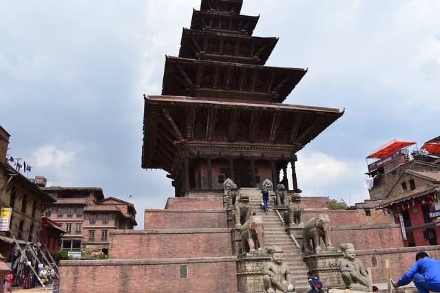 一早在尼泊尔混迹多年的钟哥就带我们去了巴德岗杜巴广场。但是2015年的地震很多建筑都倒塌,还在重建中。尼泊尔很多建筑都可以看到木雕,石雕,金属雕刻,门票500尼币。杜巴广场里面有个库玛丽神庙,是尼泊尔的活女神,在进入青春期和恢复凡人地位之前都要居住在这里。