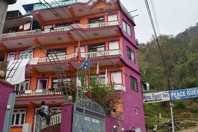 早上7点出发博卡拉,即将坐上7小时的大巴车,加颠簸的路面。下午三点到,一下车,就好多青旅过来递名片, 我们就被带到了hotel sanata .来博卡拉的目的当然是滑翔。