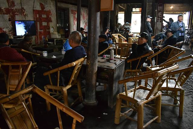观音阁老茶馆,喝茶的人很多,茶馆还保留毛主席时代的风格。基本都成了摄影基地。同桌一位好热情的老先生,特别喜欢拍照,都快比上家吉了。还请我们吃花生,又给了一串手链和地址,让我们有空找他。哈哈。