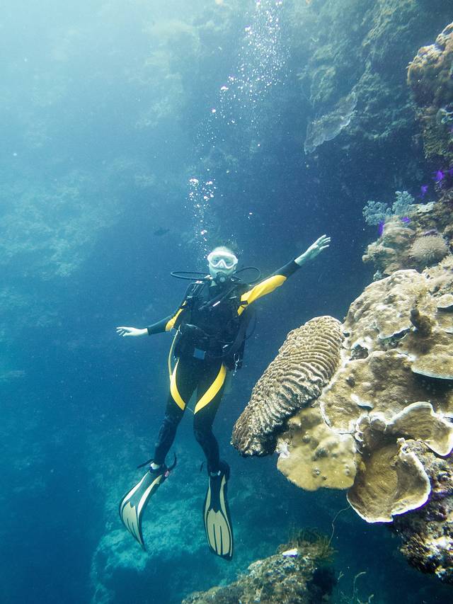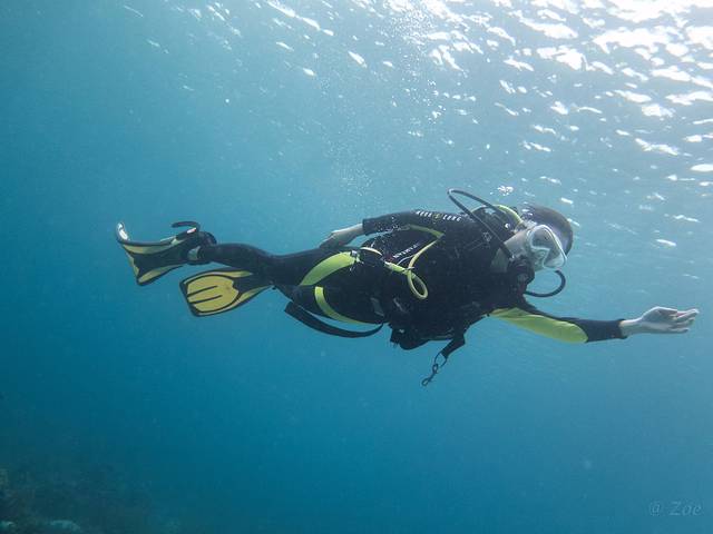 第一次,在海底,自由的翱翔,对,是翱翔不是遨游,这种身体没有重量感却能轻松自由滑动的体会,应该是飞起来的感觉吧。虽然我没有翅膀,可是在海里也能飞翔。这种感觉,让我对潜水上了瘾,回国到现在短短一周的时间,还常常做梦梦到自己在fun dive。对潜水的相思病入膏肓,我已放弃治疗。