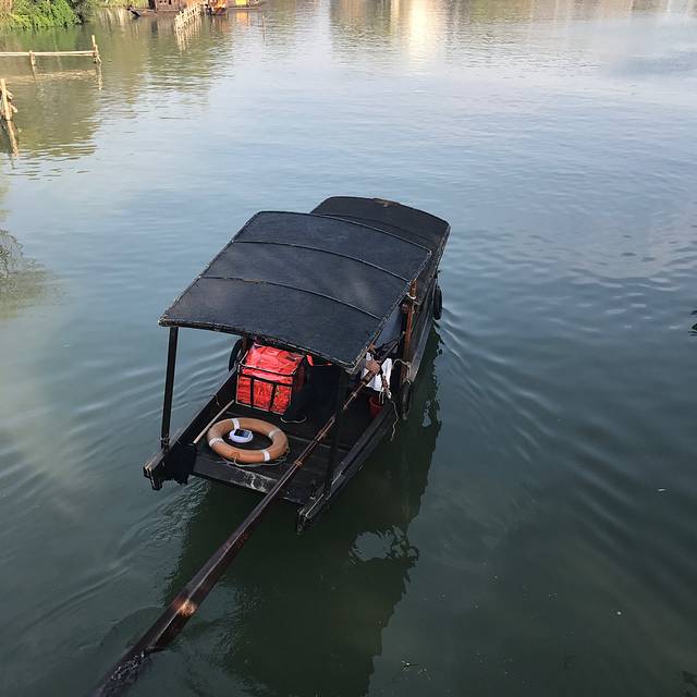 走着走着,上了桥,看到了乌篷船