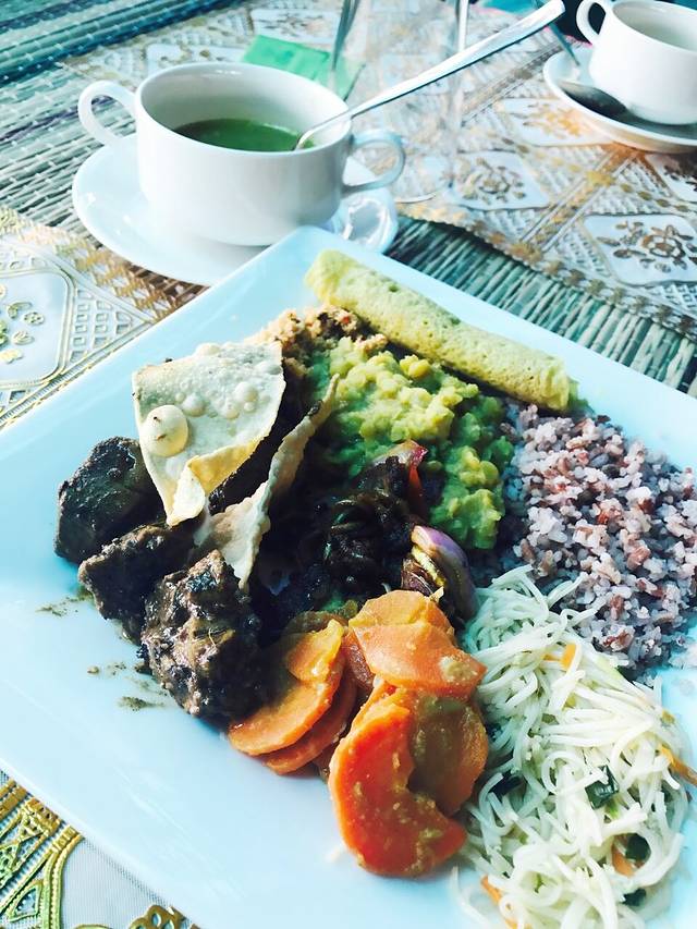 午饭我们在Sakura Restaurant 吃的,在Dambulla,人均1000卢比的buffet, 饮料要另外收费的,茄子不错而且有dessert,要问他要,其他的我觉得很一般,我不太喜欢东南亚菜。注意!!要下一个Google Map,想去哪都可以给司机导航去,也可以下载大众点评和tripadvisor,多看看推荐的餐厅和景点,还是比较靠谱的。如果让司机推荐餐厅一定要事先说好要求,比如说人均多少钱的、buffet还是order、西餐中餐还是当地菜等等,如果去了发现接受不了一定要马上跟司机说明然后离开,虽然有点儿尴尬但我们就走了好几次,因为司机有几次带去的餐厅太贵了,而且我们真的不想吃buffet。。