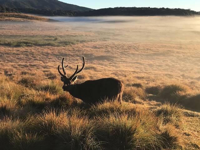 Day3: 第三天上午要去霍顿平原徒步,想在中午变热之前走出来,所以早上五点多就打包早饭从旅馆出发了。因为海拔稍高而且时间较早,所以还是挺冷的,要穿厚外套。售票处那儿有卫生间,我去上了一下,真的好原始。。右侧是脆弱的铁门,左侧是森林,感觉自己是在野地里上厕所,途中没看到其他卫生间了。。霍顿平原需要买票使司机和车都进到里面的停车场,我们三个外国人,一个本地人和车门票共收了9500卢比,建议带好水、伞,穿舒适的服装和鞋子,也可带些干粮。在检票处需要检查一下背包,包装无法撕掉的饮料和食物是不让带进去的,比如说酸奶就不让带。这里入口和出口在一个地方,类似于走了一圈,里边没有信号,人也很少,进去之前司机叮嘱了我们好几次路线,生怕我们迷路。据说全程约9公里,我们走的是顺时针: 森林区---小世界尽头---世界尽头---平原---贝克瀑布。霍顿平原是我本次旅行最喜欢的景点,必须五颗星!头一次来到一个人为改造如此小的自然景区,没有台阶,到处是土地、岩石和树丛,站在广阔的平原上时真的会被大自然深深地震撼,那种感觉很难用语言描述清楚。可能是因为实在很喜欢这里,我走走拍拍并没有觉得累,尤其是到了贝克瀑布的时候,真的觉得一切都值得了,瀑布那儿还看见了彩虹。两个世界尽头其实是悬崖,要注意安全。