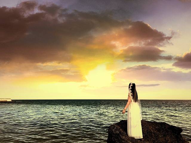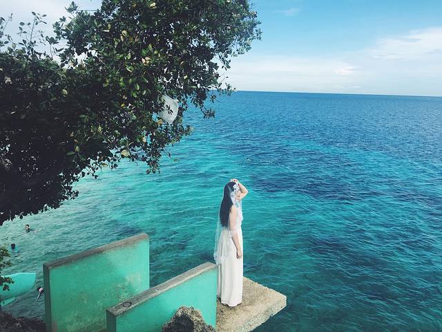 9.9包邮的头纱买得太值了,在跳台上遇到了其它中国的小伙伴,纷纷说我穿白裙拍照的感觉就差旁边站一位新郎了,真的超级美!感谢我的小伙伴~^^,saladong的果冻色海水水天一色的感觉也太美了~