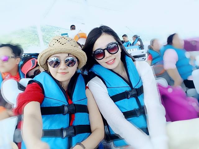 圆沙滩的海水不仅清澈见底而且分层~分层好像是海水盐分和密度的不同形成的 这个小船就是那些开过来游玩,但是不上岛游客的船,和螃蟹船还是有点区别的!圆沙滩的水清澈见底,挺值得下去玩玩的!