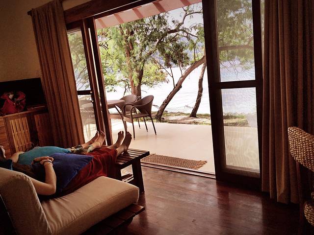 这个是我们房间门口的吊椅,晚上冲完凉躺在这个吊椅上,面对着大海数星星,真的不要太美好了哦~而且晚上一点都不闷热,海风吹过来,就这样静静地坐着,感觉这辈子就这儿了也不错!怪不得那些外国人都喜欢来海岛度假!真的好不惬意呀!