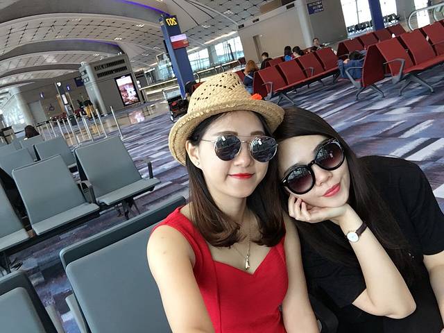 另一个方面是我的身体状况并不是那么的好,腰痛到像断了似得,前一天晚上又上上下下地收行李忙着最后的准备,导致基本没有睡到觉,和大姨妈碰到一起后整个人的身体状态非常差,第二天又背着9斤的背包和拖着24寸的箱子赶飞机,真心累人。所以等我们到了香港机场后,只能戴着黑超陪我美丽的同伴照相了。。。