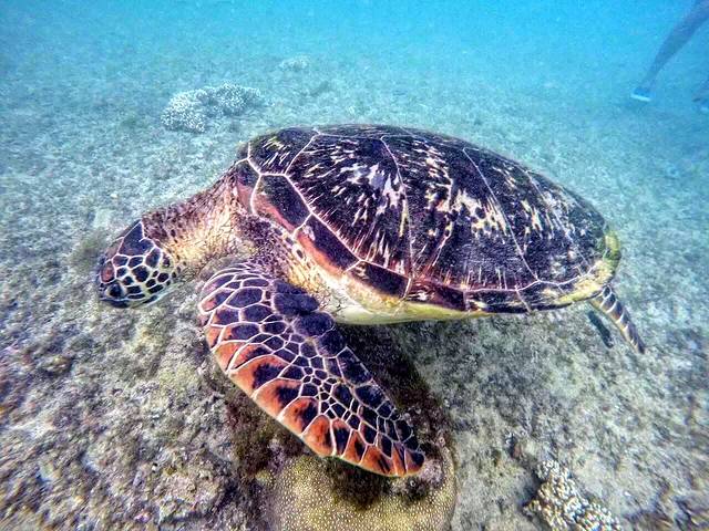 说说我的感受,其实来了2天,看鲸鲨算是我第一次下水,其实在异国他乡不会游泳的我下水还是挺害怕的,面罩呼吸管买来了也是第一次用,真还怕有个三长两短没人救我!人都是这样的,想的时候各种可怕,实际上我一碰到水,很轻易就适应了水下的呼吸方式,如果不是不会游泳怕游不回来,我真的想离开那条小小的螃蟹船去大海深处追寻鲸鲨的踪迹!我的小伙伴刚开始并没有适应呼吸管和水下模式,一直不太舒服,而且中途还上船休息了,留我一个人在下面孤独地玩耍。其实我是不怕的,但是水下相机进水了没得和鲸鲨拍照真的很心塞,心里各种想法的时候,这时有一头鲸鲨向我游过来,长长的身体 ,微笑的大嘴,朝我游过来,我静静地待在原地等着它,它在我面前不到一米地位置停下了,我伸手跟它say hi,拼命挥手,”hi ~我多折腾才看到可爱的你啊!”我用力的看,想把它永远印在我的脑海里,它停在我面前几秒钟,转头,走了,留下一个长长的背影和尾巴,甩向我一堆温柔的小气泡。感觉世界都安静了,只剩下一堆念想。我的小伙伴,你到底为什么不下来???如果还有下次,真的想好好的和温柔的巨人拍个共游照!