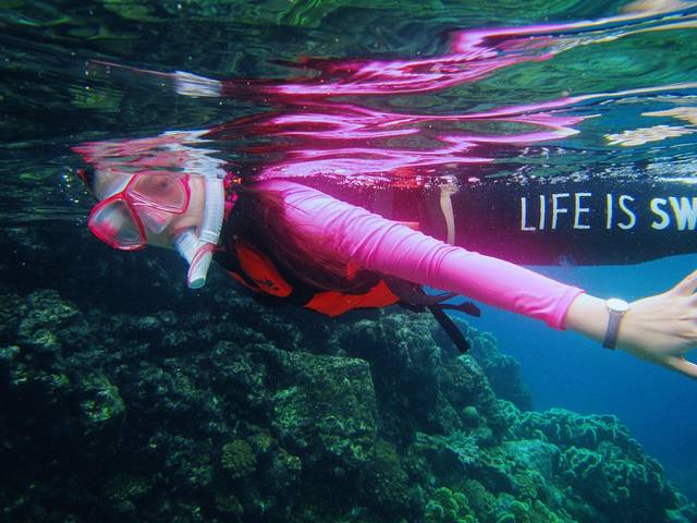 就是我面前这一片海,可以自己浮潜玩鱼,超美的海底生物世界~