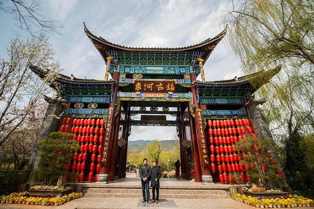 在束河古镇的门口我按下了快门,虽然给爸妈没有唯美的角度,但是这种中规中矩的游客照已经让他们开心不已。给他们拍完以后,老爸就掏出了手机开始一路狂拍,老爸,你也太,太,太能拍了吧。(以至于在第二天观看宋城千古情的时候16G的手机内存居然都用完了)