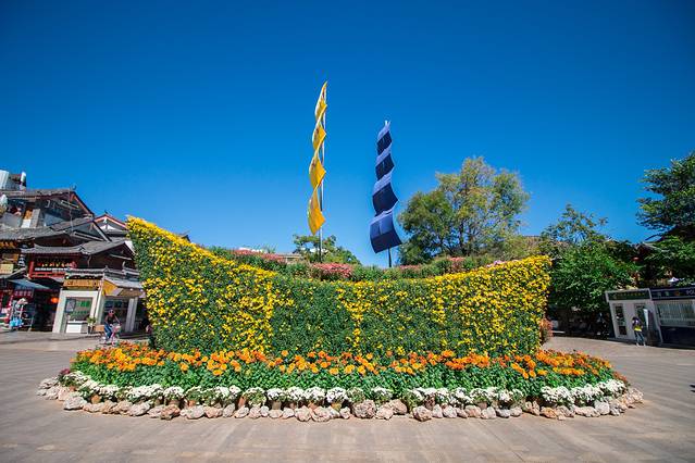 不知道是上天有意安排还是我们的运气好,来到丽江的前一天这里都是阴雨天。当第二天推开窗户的时候发现当天天气非常好,蓝天白云。前一天晚上的时候我还给爸妈说来到丽江这边你们就睡个自然醒,不要起的那么早,可是爸妈却早早的起来了,等到我洗漱完后我们就走出客栈,开始我们的丽江之行了。