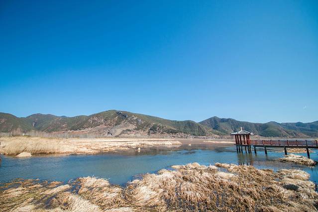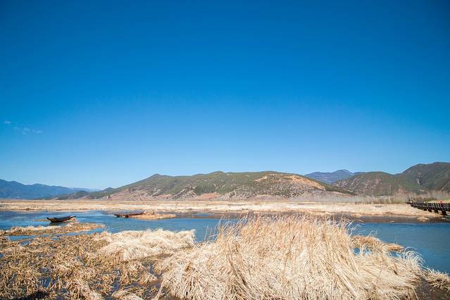 桥下由于长年泥沙淤积,导致水深变浅,长有茂密的芦苇,远远望去,像一片草的海洋,故当地人称其为“草海”。不过三月份的泸沽湖还没有达到最美的时刻,如果能在秋天来到这里的时候绝对可以欣赏到另外一番的美景。
