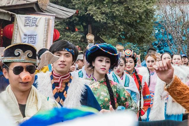 云南的天气也真是怪,早上的时候还下过雨,中午的时候又是艳阳高照。景区内随着不同的时间段都有精彩的表演,你无法想象身穿着纳西组的服饰跳着现代的神曲及舞蹈,这种画风只有在这里才能看到,超级搞笑。