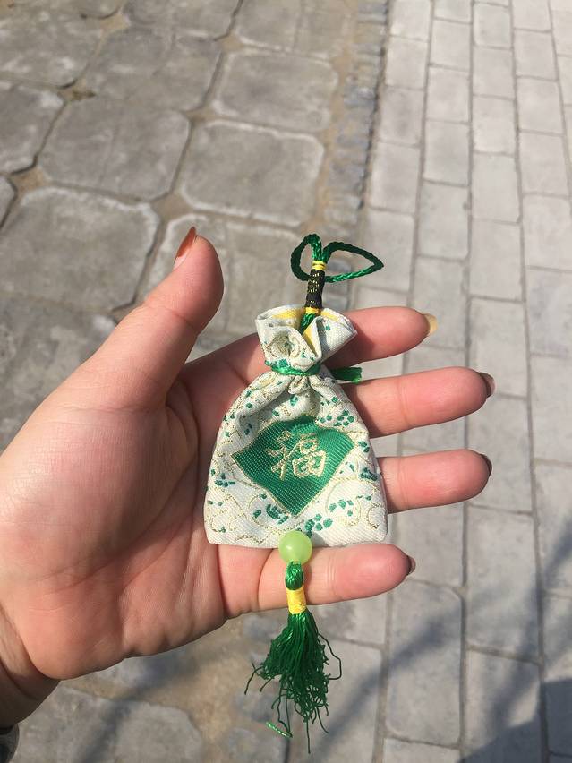 只要是添加香油钱的人都可以得到一个福袋,工作人员会指引着到屋内一角有工作人员帮着系福袋,其实主要是为了卖纪念品,不同价位的,种类繁多,不买的带着福袋走人就行了。