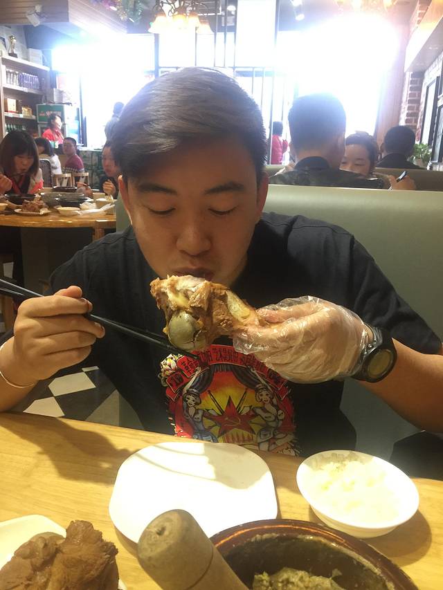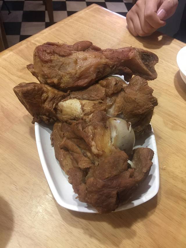 这家店也是特色鲁菜店,分店也挺多的,我们吃的这家就在煎饼卷大葱边上,必须还是走着去啊。好吃的地儿总是排队的(金牌酱棒骨7.9元/块,还有馋狼脊骨4.9元/块)。翻桌超快的。