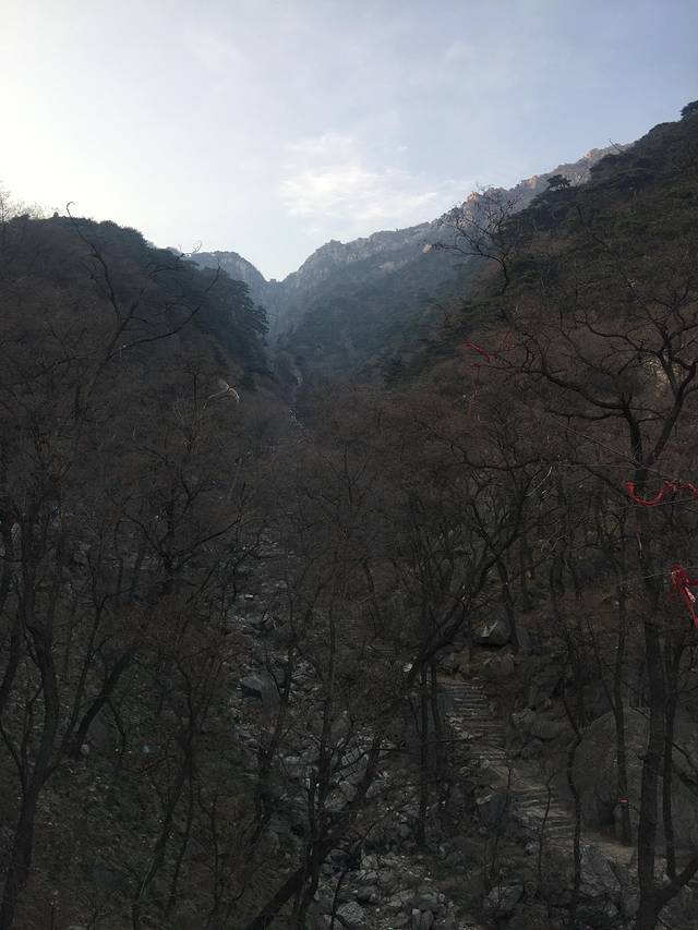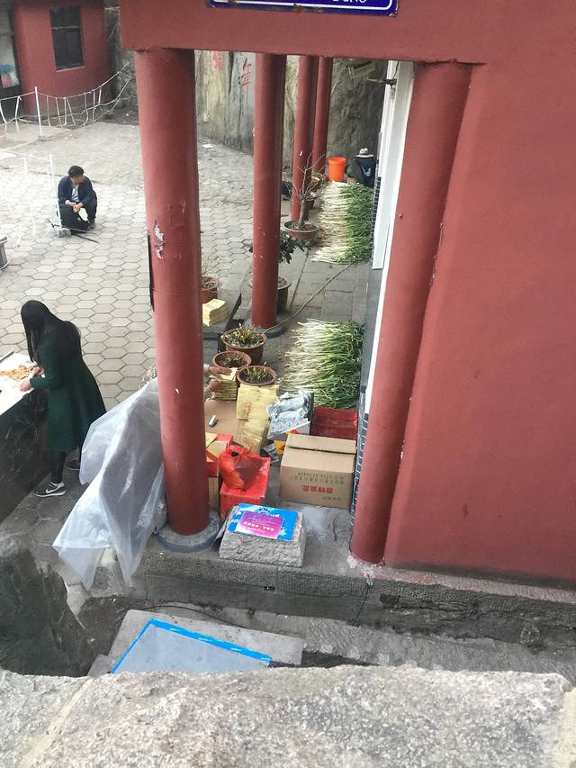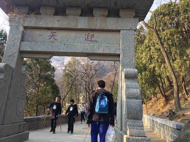 做攻略的时候是说,从红门有大巴可以到中山门,并且末班是5点半,所以我们出了岱庙直接沿着路就打算上山的。(路边有卖拐棍的,实木的10元/根,竹子的2元/根,体重大的果断买贵的(山上会稍微贵一点,不多)。而且在行走的途中还能当扁担用,两个人抬着走。(都说山上吃的贵,买了一袋子))问路上的行人才知道,坐大巴是在天外村,离红门大概3.7公里左右,路线与步行路线不同。我们貌似又被坑了,打黑车30元送到。对于难打车的地方而言,有车就应该感恩。