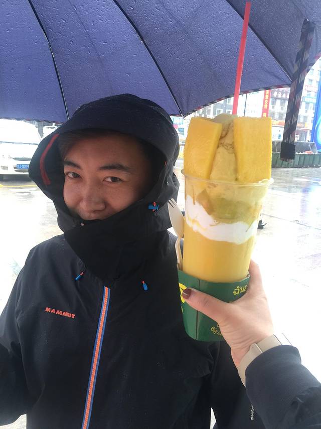 昨晚回来的路上发现的店,可惜昨儿已经关门了,今天必须补上。泰芒了超大杯,30元/杯。超级爽,芒果汁+奶油+芒果粒+芒果沙冰+4片超大片芒果片,一路拿着去吃饭,感觉得有2斤重。