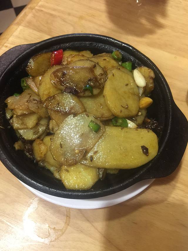 干锅土豆片,18元/份,满嘴的孜然味儿,香啊。