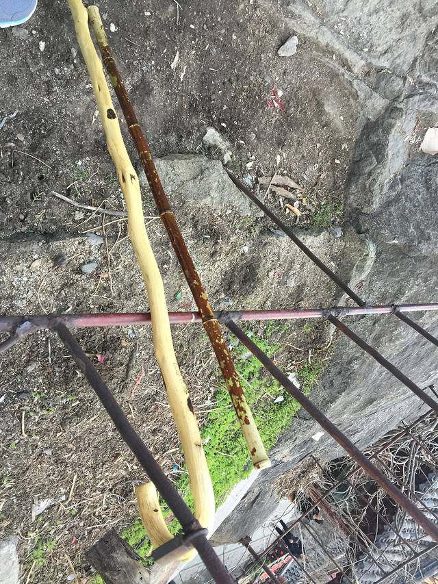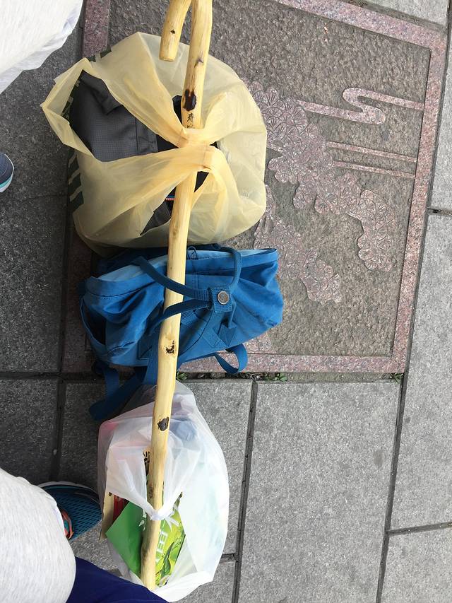 2块的拐棍真的很是不结实,一路上很多被丢弃的坏的拐棍。(这个原来的样子是有一个塑料的龙头粘在上面,棍体刷深红色漆)。如果不想买,走在路上也有可能捡到好的哦,我们在山顶就捡到一个,嘿嘿。