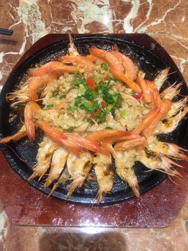 铁板蒜蓉开片虾,48元/份。也许因为是三线城市,物价真的很便宜,量也多,好吃。