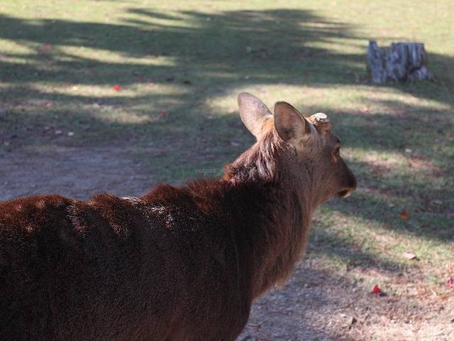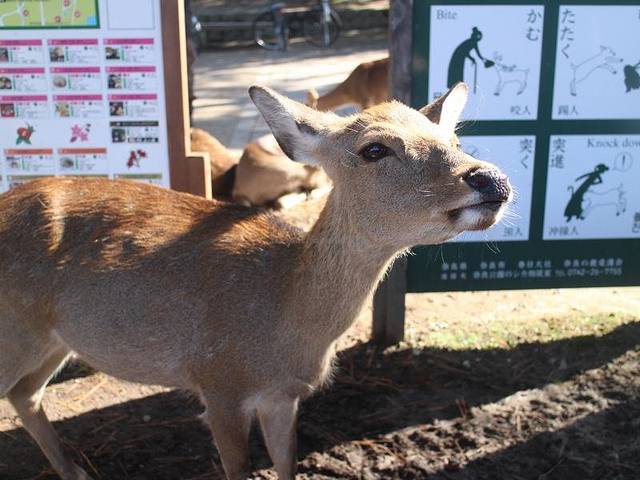 第三天去了奈良。奈良有一个寺院群,经常出现的东大寺,什么什么寺,什么什么的都在这个区域里。看小鹿也在这个寺院群区域。jr奈良站到看小鹿的地方需要走大概20-30分钟,近铁线需要10分钟左右。这是地铁里的鹿童子,这长相,这神态不知怎么地总透露着阵阵猥琐