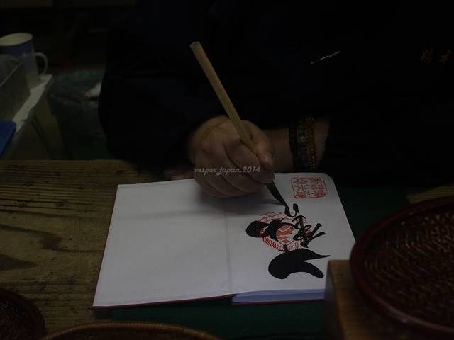 除了御守,还有纪念本,可以让神社的工作人员给盖章写字,写的是不动明王(特别帅气),写完后会要求你去捐一点儿钱,不多,几百日币的样子,但是我们不会说日语,这个工作人员不会说中文或英文,于是。。。她就放弃了。我们最后也没有找到捐钱的地方。。。。本子的纸质非常非常好