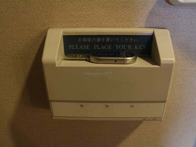 我们住的是新大谷酒店,在大阪城公园的边上,靠近一个jr线的一个站(喂!你到底是有多容易忘事儿!)。酒店的取电方式特别神奇,不是插卡,而是放钥匙。我们研究了好久才发现。