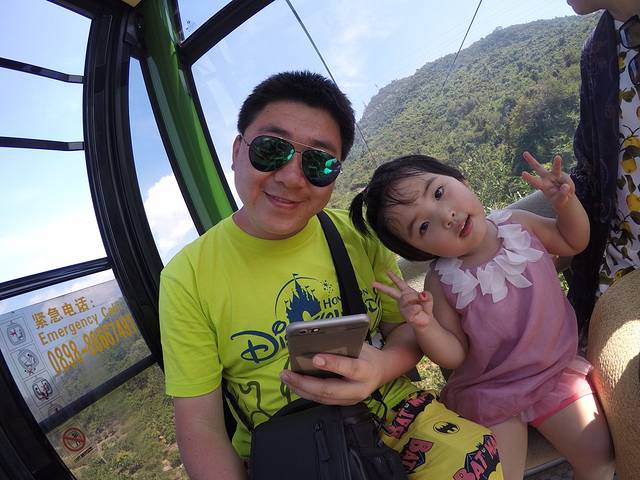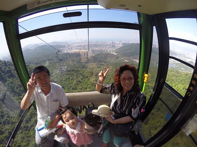 乘坐缆车上山,爸妈和小外甥女都很开心~景色不错