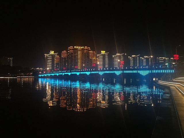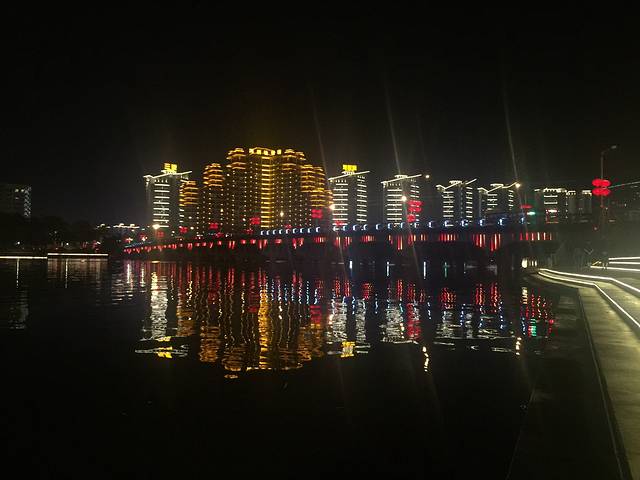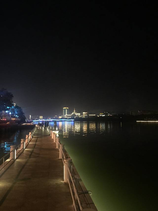 晚上从第一市场吃到扶墙出,第一市场对面有河水和木制的栈道,走一走消消食,微风习习,气候很舒服,水中的两岸倒影也很美,用手机随便拍了几张。