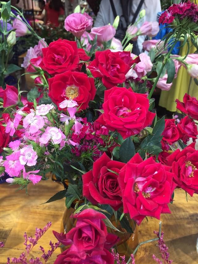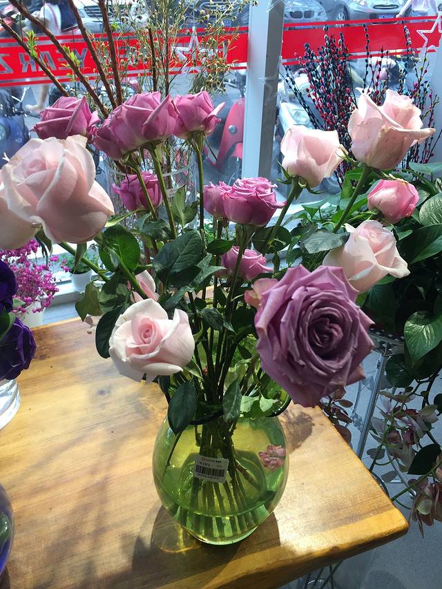 我们四个人打车去了市区的解放路,逛了逛解放路步行街,所谓步行街,不过就是一些不上道的小品牌和卖纪念品和珍珠珊瑚饰品的摊位,兴趣不大,解放路市场门口有满记甜品,还有一些小吃,还有一些卖杂货的小的连锁店,店里还卖花~哈哈,随手拍几张。