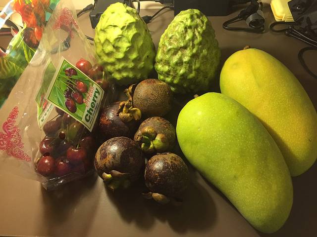 水果新鲜又好吃,我们人多,都是成箱往回抬的节奏,山竹又甜又大,基本没有坏的,芒果正是季节,但是不要贪吃哦,容易过敏或者上火。