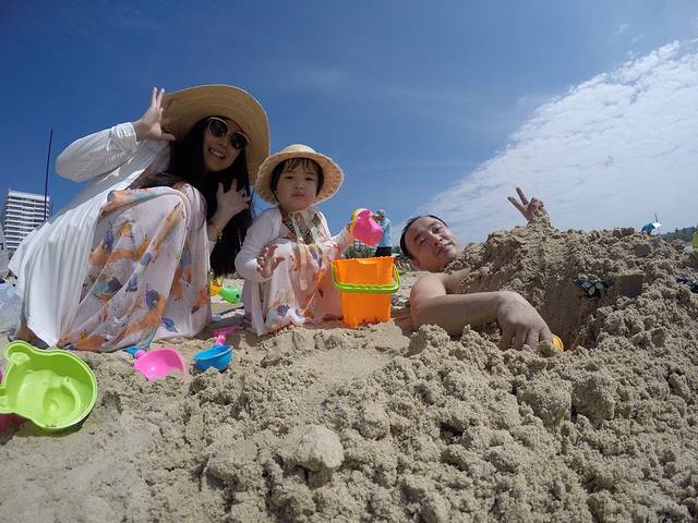 小姑子和外甥女都是一第次看海,小朋友尤其开心~这张照片幸福的很自然。