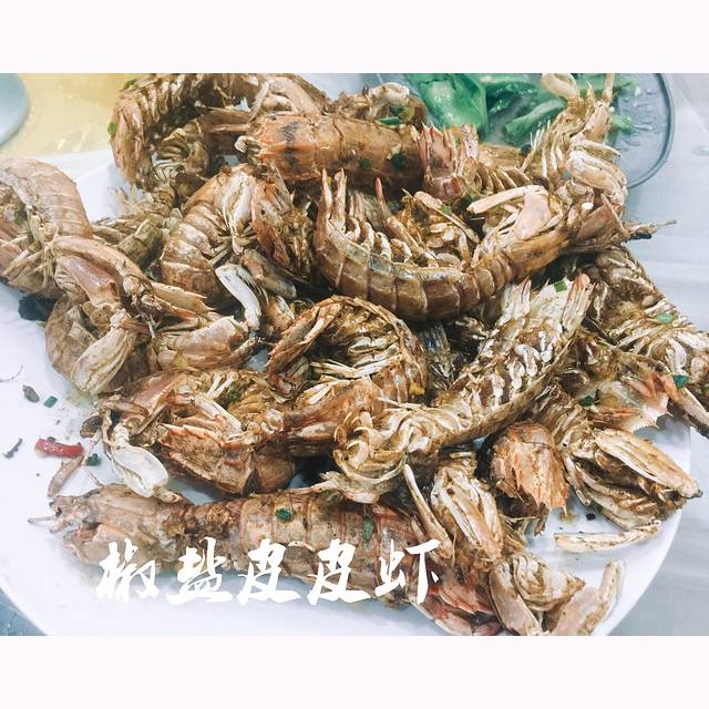 椒盐皮皮虾的外壳上的椒盐太美味啦,一边剥虾一边吮手指,慢慢吃,很有味道~推荐!