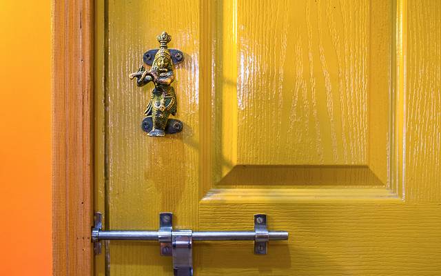 ▲门的拉手还有外面的门叩是用黄铜手工制作的,用料十足且极具特色,喜欢的话在酒店前台可以买到。