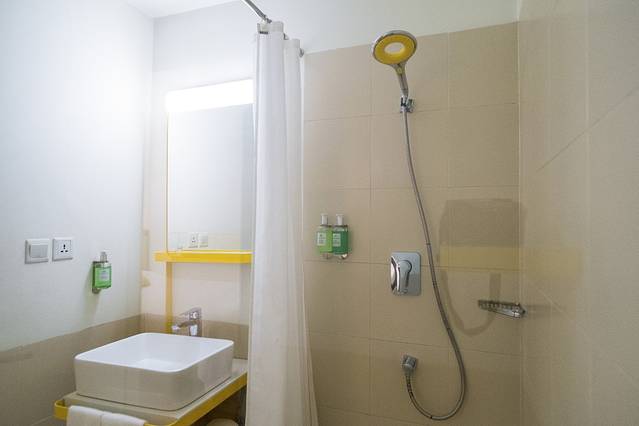 ▲房间真是堪称简陋,尤其这种颜色的花床单花被套,内心深处就默认了它不干净,感觉睡了一万个印度人没换过