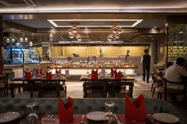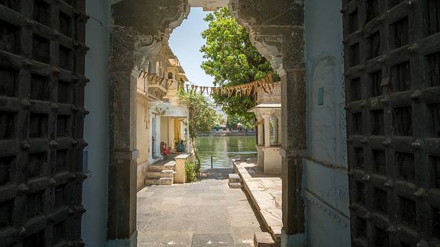 沿着坡道往上走,有一家很棒的餐厅,坐在餐厅可以远眺皮丘拉湖中与城市宫殿遥相对应的水上宫殿(Jag Niwas)。