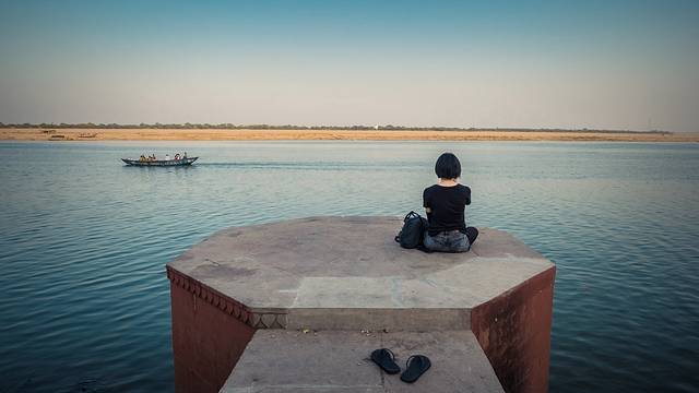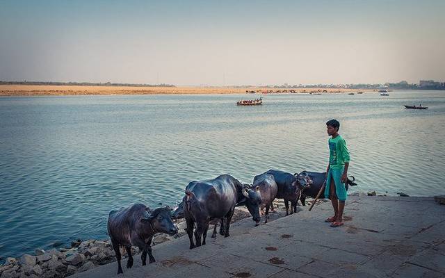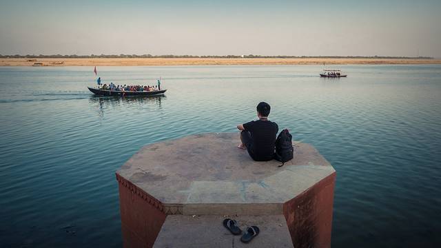 恒河左岸是矗立千年的古城瓦拉纳西,右岸则是寸草不生的一片荒地,之所以人们不在右岸建设,据说是为了不让任何建筑遮挡每日清晨第一缕阳光照射到这座古老的圣城。