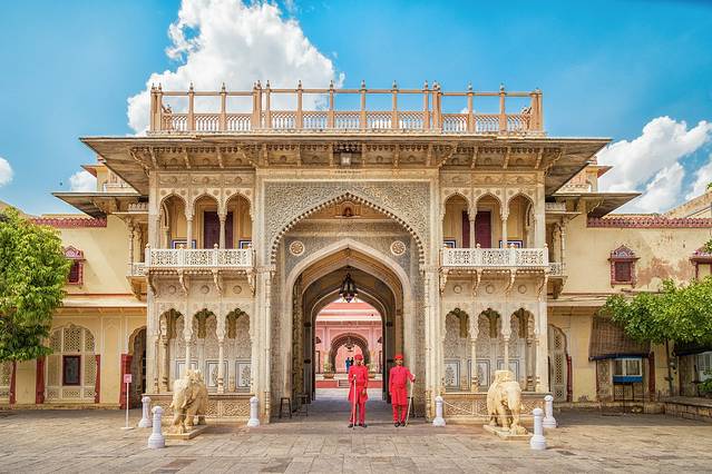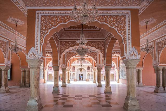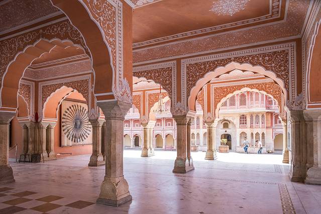▲宫殿全部用花岗石和大理石建成,建筑风格上丰富地融合了拉贾斯坦、莫卧儿、中世纪、欧洲及中国的建筑艺术风格。