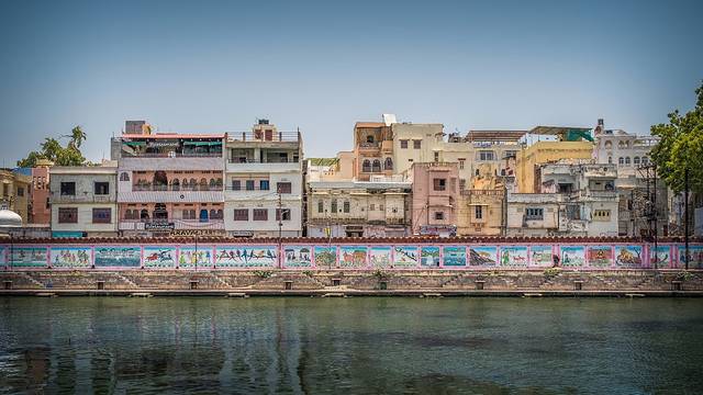 一座座白色的房子错落有致地围绕在皮丘拉湖畔,没有了其他城市那样满眼浓郁的色彩;街道干净许多也有了秩序,不再是垃圾遍地神牛横行;天空露出淡淡的蓝色,不再被灰尘和雾霾遮掩——这里被誉为最不像印度的印度城市——白色之城乌代普尔。