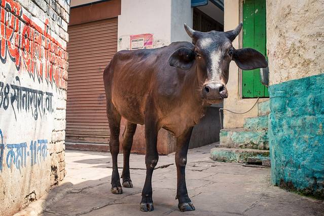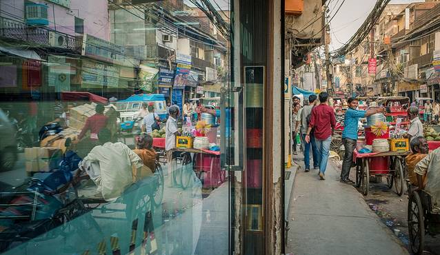 所有的感观和感受都只能用混乱无序来形容,空气中尘土飞扬,街头垃圾遍地,拥挤的街道中不仅有尾冒黑烟的老旧汽车和横冲直撞的突突车,还有见缝插针的自行车和穿梭其中的行人,更有边跑边拉屎的马车和驻足在马路中间的神牛。