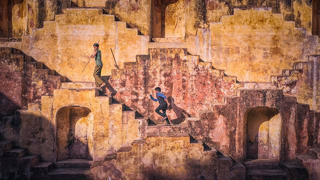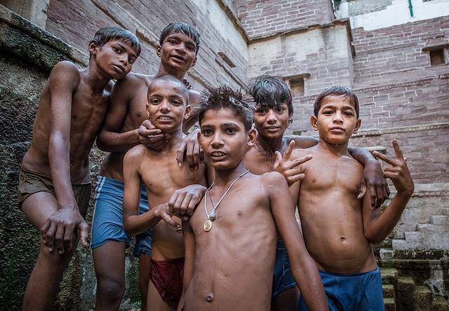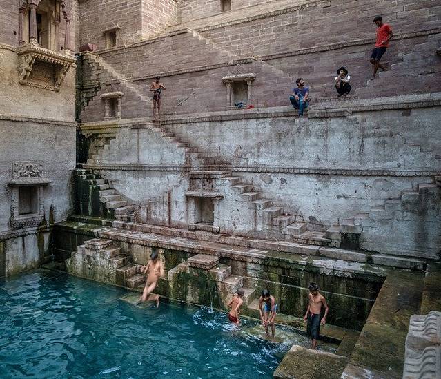 这是一座隐藏在焦特普尔旧城内的阶梯井,水井非常深,下面的水还算干净,一群熊孩子正在玩水,看到我在拍照热情地邀请我下水与他们同流合污。