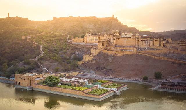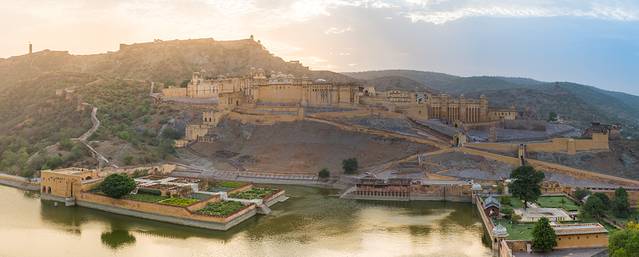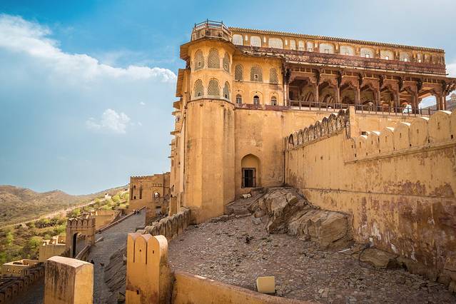 ▲这座华丽的拉贾斯坦邦最大宫殿,有很多漂亮的阳台、楼塔设计。宫殿建筑群包含很多大大小小宫殿和花园。