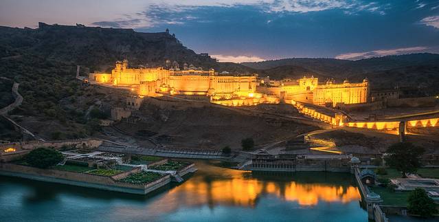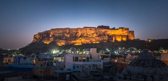 连续在Pal Haveli的楼顶露天餐厅吃了三顿饭,最后一晚顺便拍了个古堡的全景。