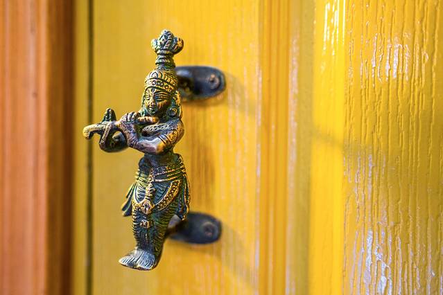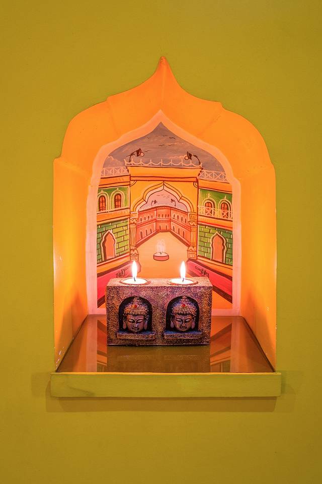 ▲墙上的壁龛内放了一个佛像的烛台,我非常不解,为何在一个印度教风格的酒店房间内会出现佛教元素。
