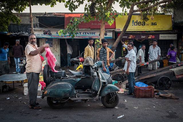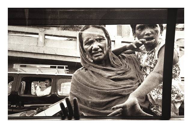 ▲离开孟买前往机场的途中,车子在一个路口停下来,窗外走来一个乞讨者,一手抱着被毁容的孩子,一只手搭在车窗上,乞求车内的施舍。来不及拿相机,我用手机拍下了这一幕,不经意间像大师Steve McCurry致敬了!